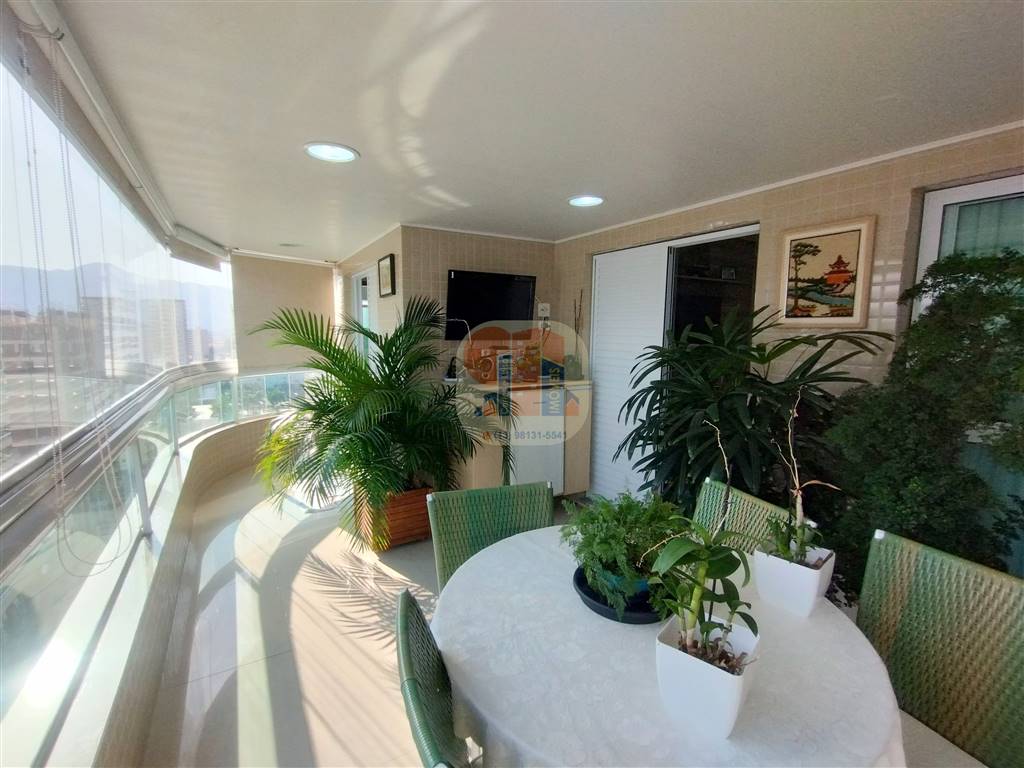 125 m2 área útil, 3 dormitórios, sala com sacada gourmet, quarto e suíte com porta para sacada, 2 vagas na garagem, mobiliado. sacada envidraçada. Lazer com salão de festas, salão de jogos, piscina adulto e infantil, prédio 100m do mar, portaria 24 horas.