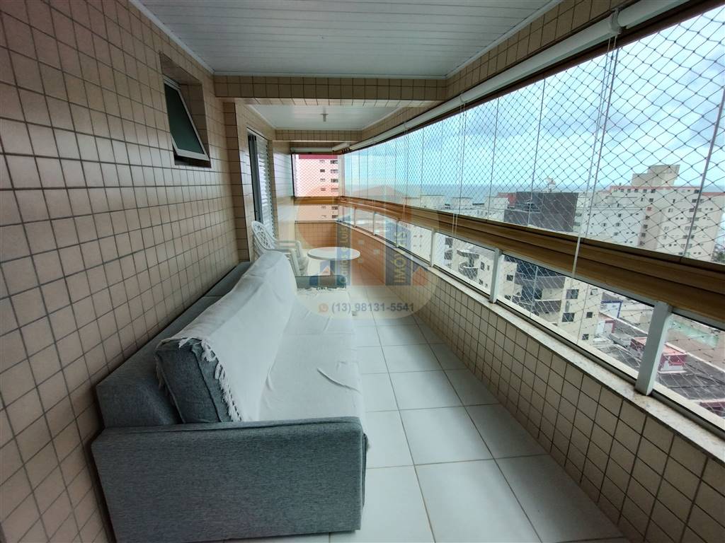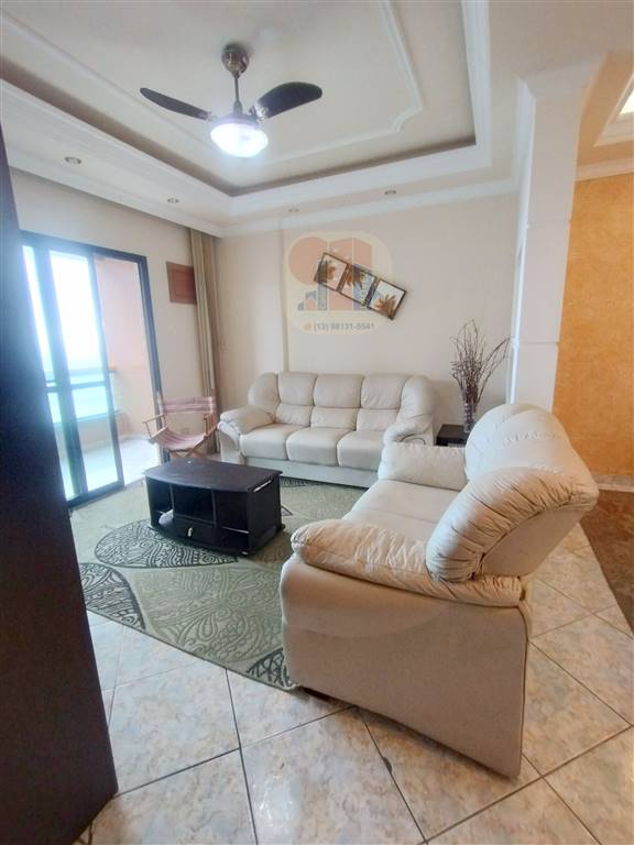 103m2 área útil, sala 2 ambientes com sacada e vista do mar, suite com sacada e vista do mar, dormitório com sacada e vista do mar, cozinha ampla, área de serviço, uma vaga na garagem, fica mobiliado (retira a TV, máquina lavar, geladeira, microondas).