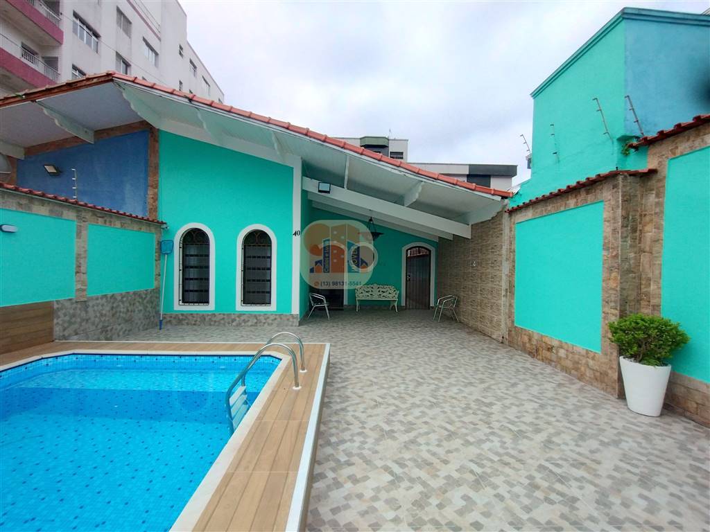 Casa 159m2 , terreno 308m2, 3 dormitórios sendo 1 suite, sala 2 ambientes, cozinha ampla, banheiro social, ar condicionado na sala e dormitórios, mobiliado, área de churrasqueira coberta, quarto de serviço e banheiro, lavanderia, piscina, 5 vagas de garagem, portão automático, grades de proteção. Localizado a 200 metros do comércio local e da feirinha, 300 metros do mar.