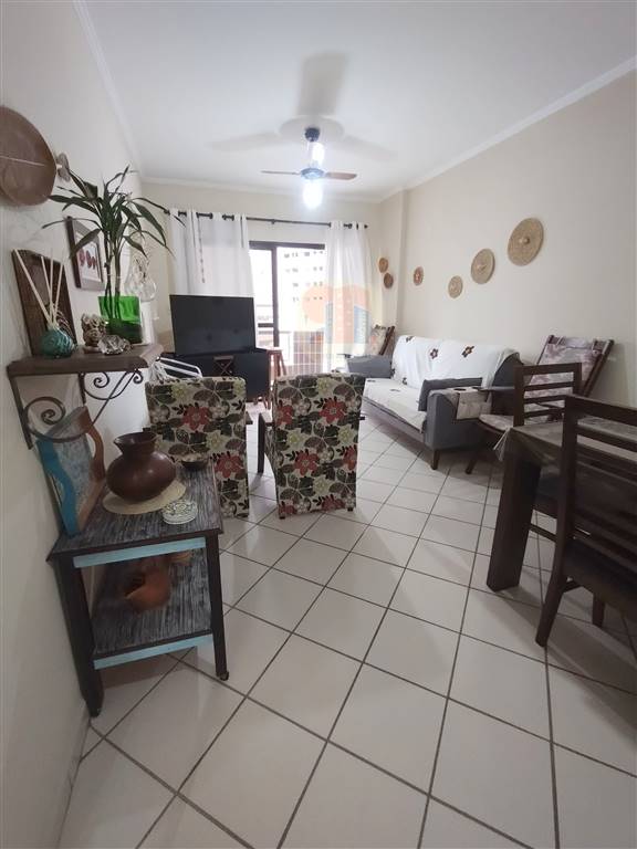 80m2 área útil, sala com sacada, vista do mar, 2 dormitórios sendo 1 suíte acesso a sacada, dormitório com sacada, banheiro social, cozinha, mobiliado, uma vaga na garagem.