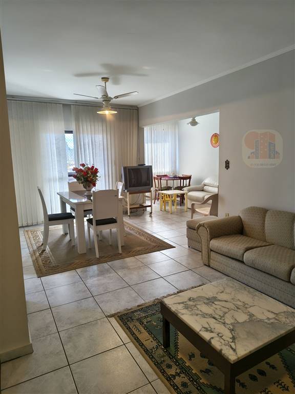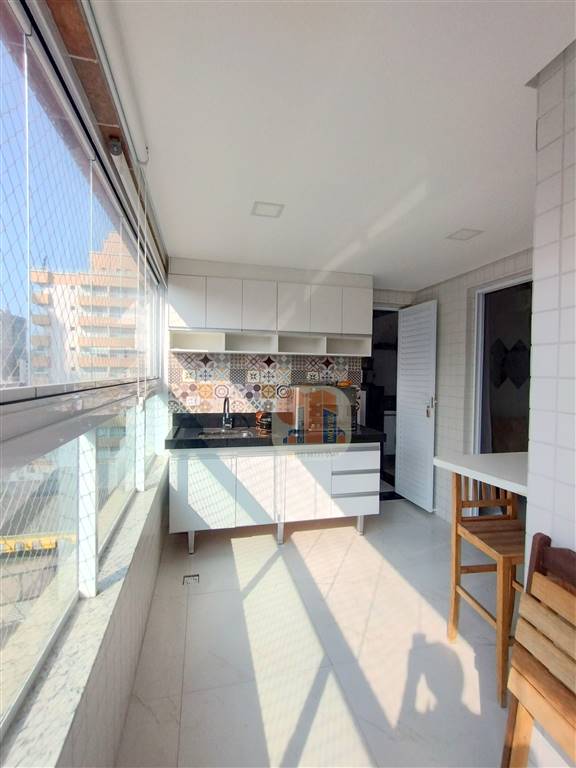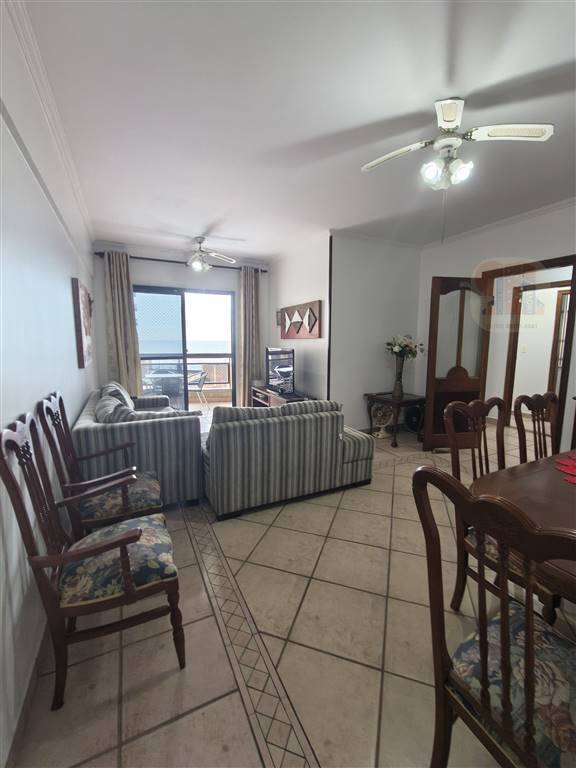 103m2 área útil, sala 2 ambientes com sacada e vista do mar, suite com sacada e vista do mar, dormitório com sacada e vista do mar, cozinha ampla, área de serviço, uma vaga na garagem, fica mobiliado (retira a TV, máquina lavar, geladeira, microondas).
