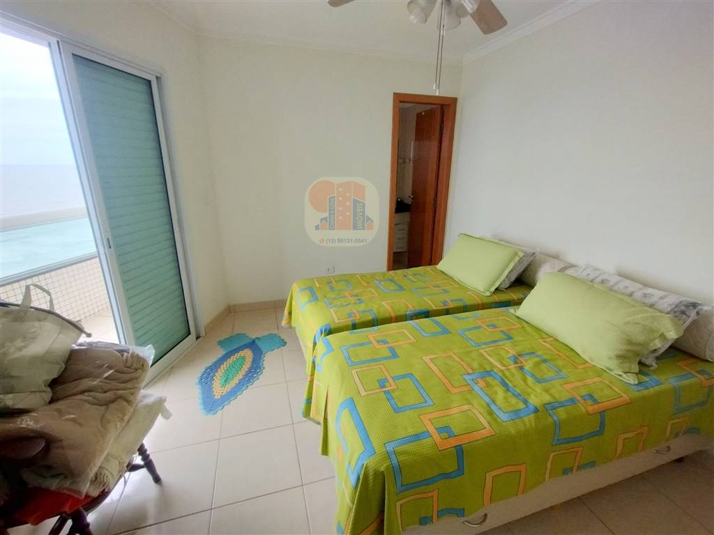 Apartamento frente do mar, 103 m2 de area util, com 3 dormitorios, sendo 1 suite, todos com acesso para sacada, banheiro social, sala 2 ambientes, sacadas amplas com vista do mar, area de servico. Com 2 vagas na garagem.