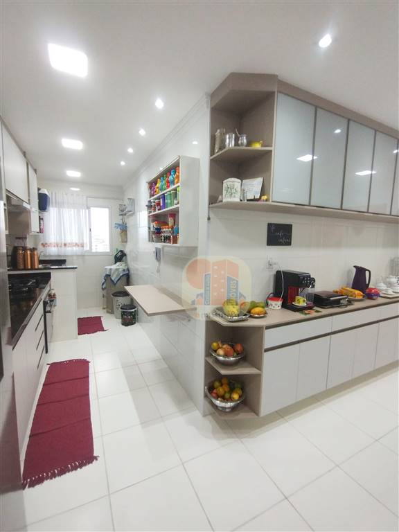 Móveis planejados na cozinha, copa, área de serviços, quartos, sala e na sacada.